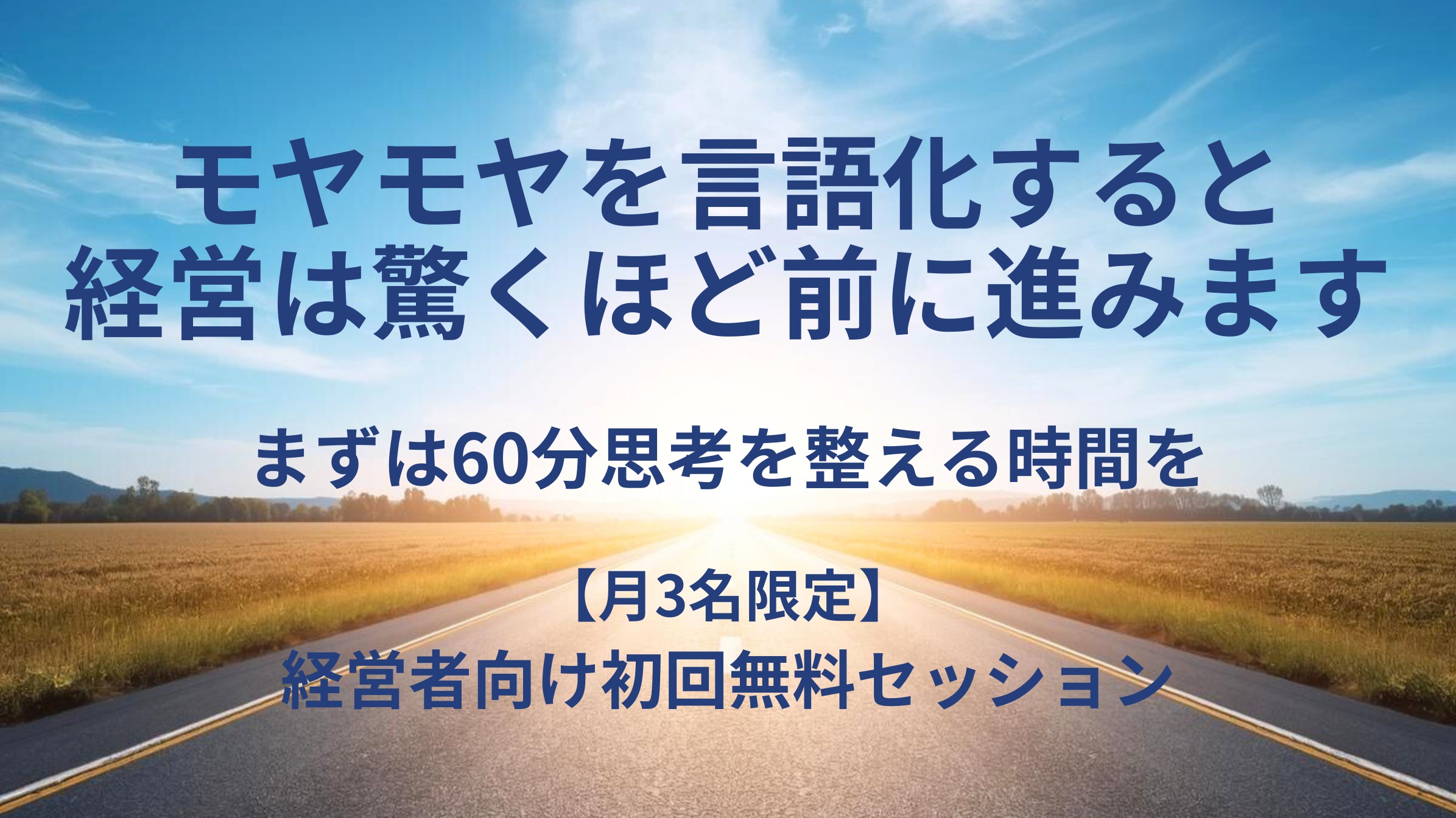 経営者自身の軸が整い、迷いなく判断できる状態を共につくる、組織変革の“最初の一歩”となるセッションです。